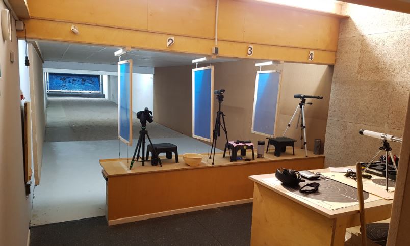 Der große Luftpistolen- bzw. Luftgewehr-Stand ist mit 15 Bahnen ausgestattet.